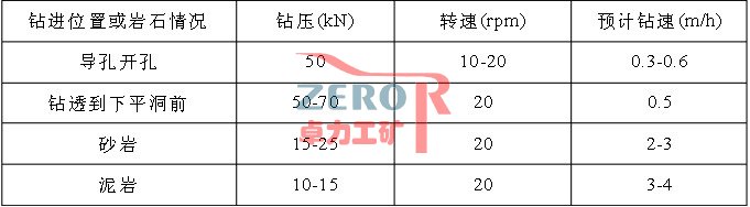 (2)、導孔鉆進參數(shù) 鉆進參數(shù)選擇主要依據(jù)地層條件,鉆進部位等多方面因素確定。一般按表3-3所示參數(shù)施工,但在施工時根據(jù)不同情況予以調整。
