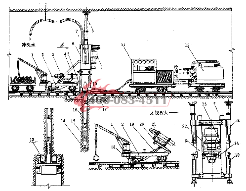 我國從20紀70年代開始自制反井鉆機,目前已有多臺不同規(guī)格型式的反井鉆機在冶金和煤炭行業(yè)使用。反井鉆進法具有機械化程度高,工人勞動強度低,施工安全,施工速度快,效率高,成本低及施工過程中不破壞圍巖、井壁光滑、成井質(zhì)量好等一系列優(yōu)點。但使用設備較多,操作技術較復雜。在條件具備時,應優(yōu)先采用。
