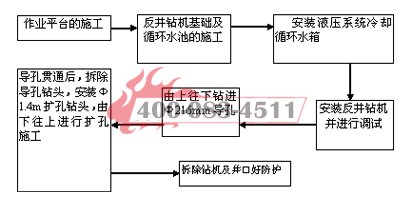 導(dǎo)孔貫穿后鄙人平洞將導(dǎo)孔鉆頭卸下,并裝置Ф1.4m擴孔鉆頭,再由下向上擴孔。擴孔時的石碴通過冷卻水的沖刷和自重墜落到下平洞。